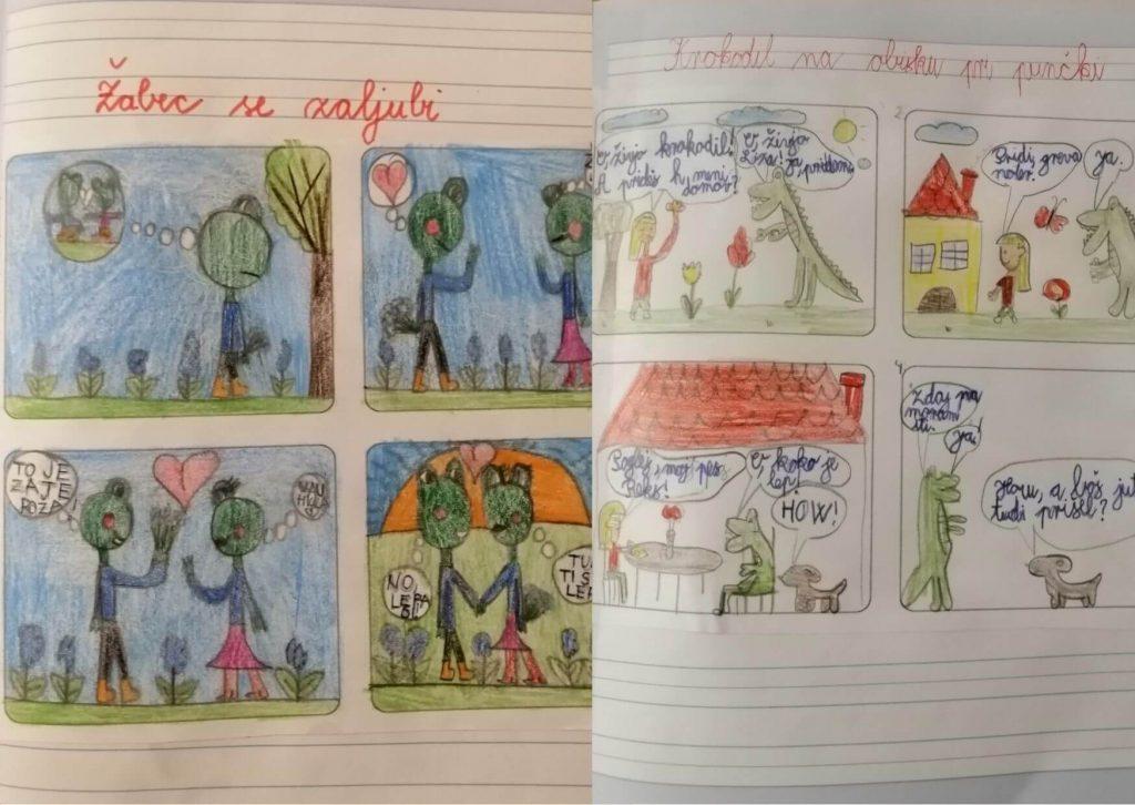 Pisni izdelki in stripi učencev, ki so si ogledali Slonov tekmovalni programa II in III na 18. Animateki.