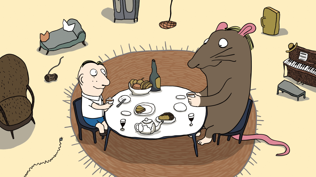 K našemu junaku se priseli orjaška nagajiva podgana. Žvižga ob zvoku radia, poseda po hladilniku, čofota po kadi in je preprosto povsod – glasna, nadležna, neumorna. Ko nenadoma izgine, junak ugotovi, da v stanovanju še nikoli ni bilo tako tiho – in tako prazno.